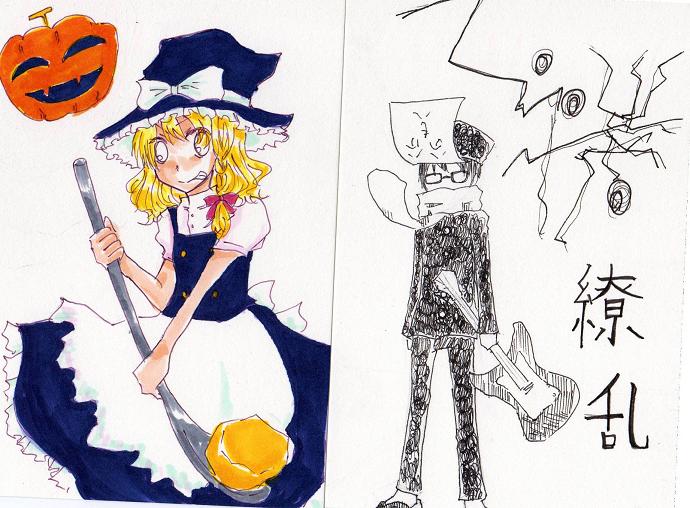 斜めってしまいました。我がサークルは文化祭でイラリク受付をするので、いくつか描いといたのをアップ。やべ、魔理沙の目の色忘れちったい。